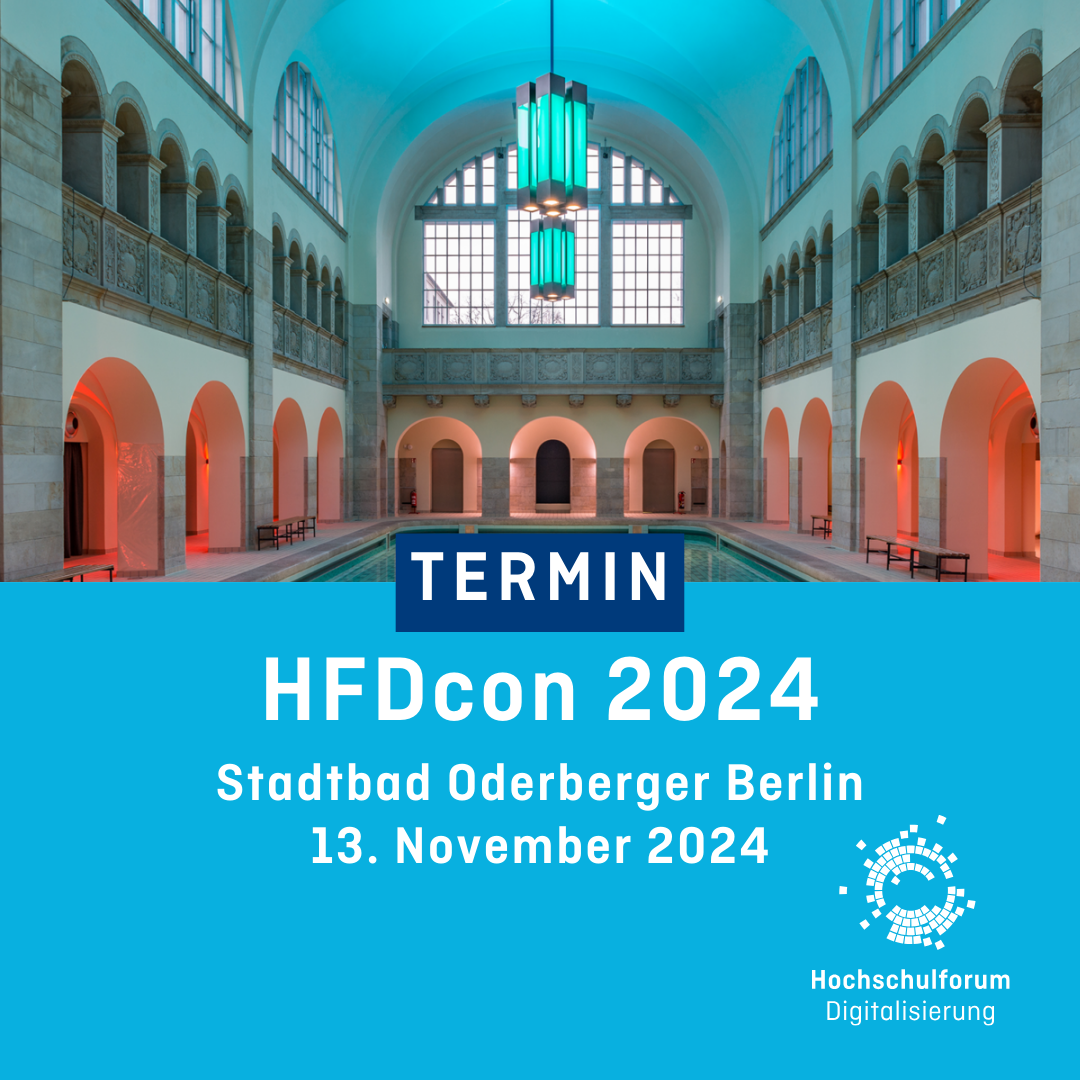 Am 13.11.2024 findet die HFDcon 2024 im Stadtbad in der Oderberger Straße in Berlin statt. Die HFDcon ist das Netzwerktreffen für Digital-Pionier:innen an Hochschulen. Gestalten Sie die HFDcon mit, indem Sie Ihre Workshop-Beiträge und Ihre “Worst digital campus experience” einreichen.