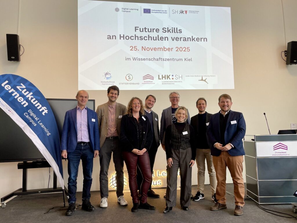 Wo unsere Themenwoche den Höhepunkt unseres Formates bildete, war unser Besuch Ende November 2025 in Kiel der krönende Abschluss. Aus alter Verbundenheit und ertragreicher gemeinsamer Arbeit in unterschiedlichen Formaten und Gremien des HFD haben wir zusammen mit Claudia Obermeier und Ronny Röwert im Wissenschaftszentrum Kiel einen ganzen Tag zum weiten Themenfeld Future Skills zu gestalten. Dabei hatten wir das Glück, unsere Kollegin Carolin Then Bergh der DigitalChangeMaker und Robert Lepenies von der Karlshochschule in Karlsruhe gewinnen dürfen. Durch sie haben wir den reichhaltigen Tag um einen Persona-Workshop aus Studierenden-Perspektive und eine Keynote zu Future-Capabilities ergänzen können.